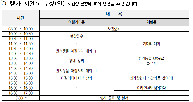| 참가 대상 | 지역 반려인 및 반려견 |