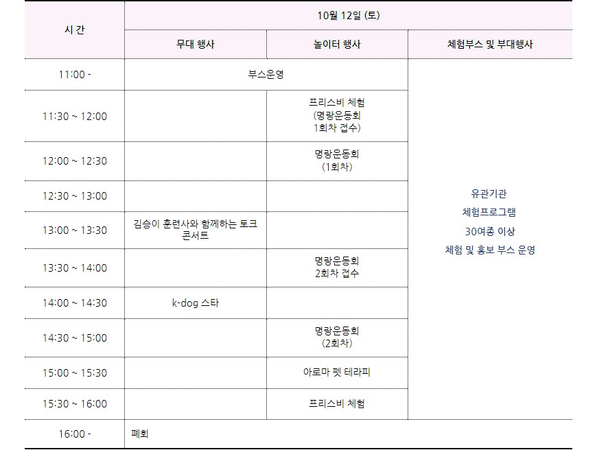 | 반려동물 헬스케어 부스 | 반려동물 건강 및 행동 상담 제공 |